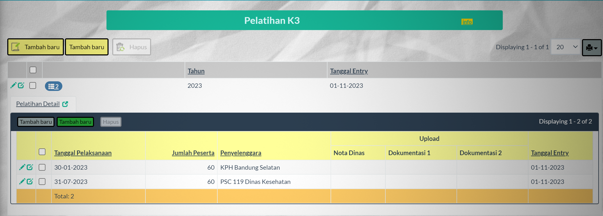 Untuk menambahkan jenis kegiatan pelatihan K3 ulangi langkah mulai nomor 4.