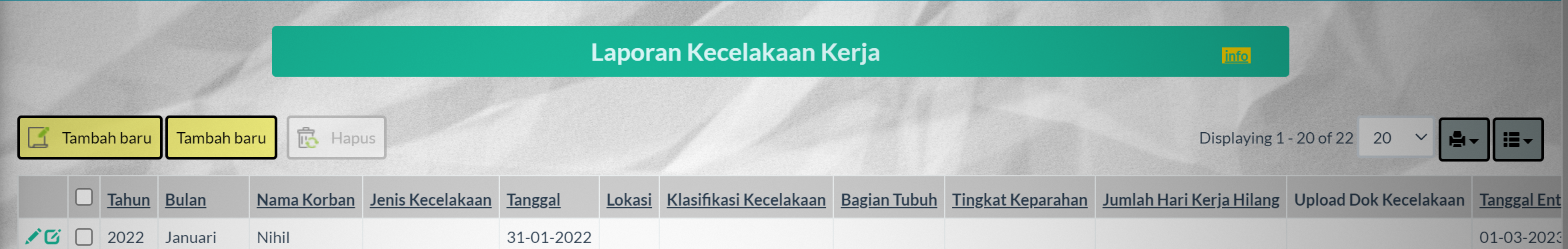 11. Jumlah hari kerja hilang : terisi secara otomatis (kecuali luka ringan diisi dengan jumlah hari korban dirawat/tidak masuk kerja).