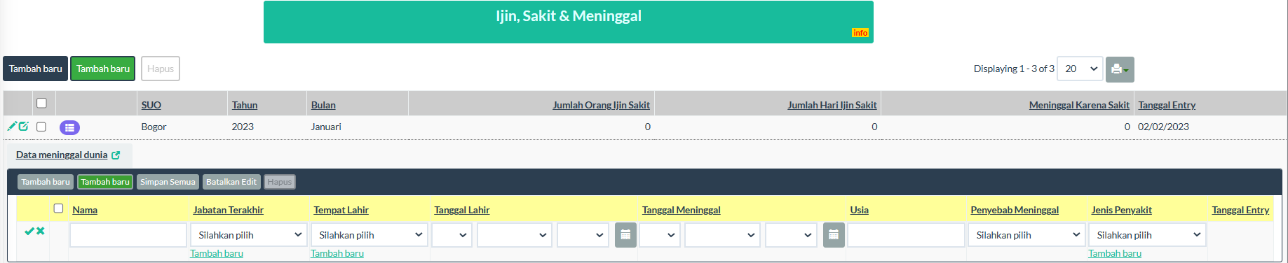 5. Jumlah Hari Ijin Sakit : mengisi dengan jumlah hari Ijin karyawan sakit pada bulan pelaporan.