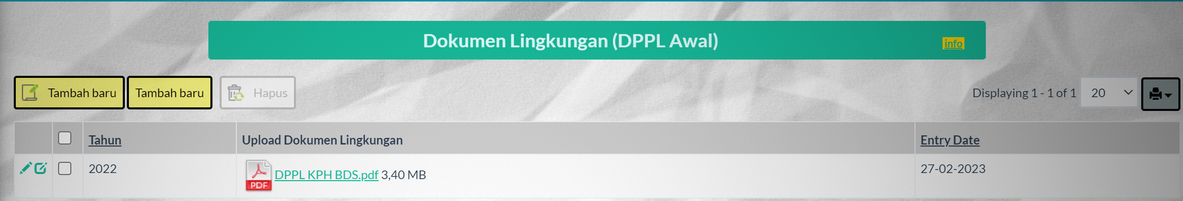 Dokumen Lingkungan di upload pada kolom "Upload Dokumen Lingkungan"