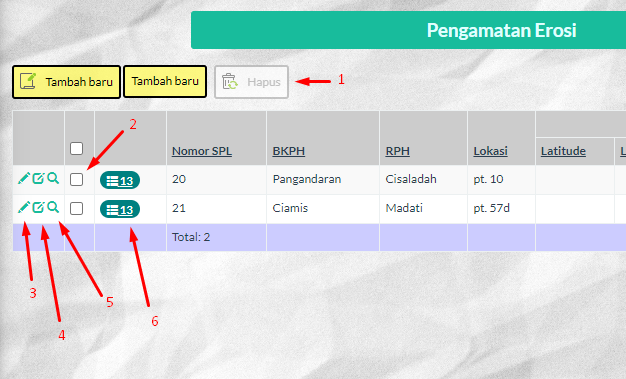 6 : membuka/menutup sub table.