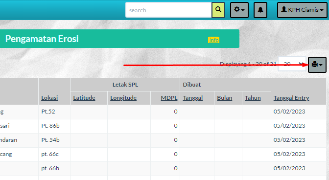 Untuk mencetak ke printer dapat dilakukan dengan mengklik tombol di sebelah kanan atas table seperti berikut
