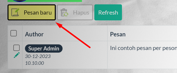 Yang mana akan membuka form List Komunikasi/Berita, kemudian klik tombol pesan baru seperti ini: