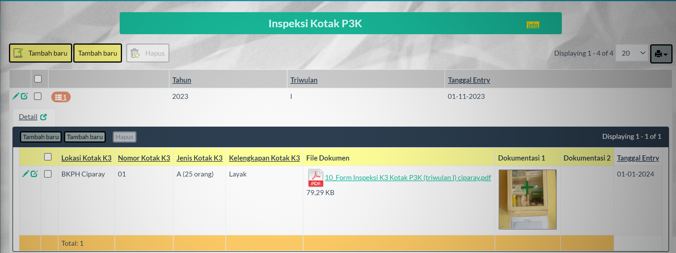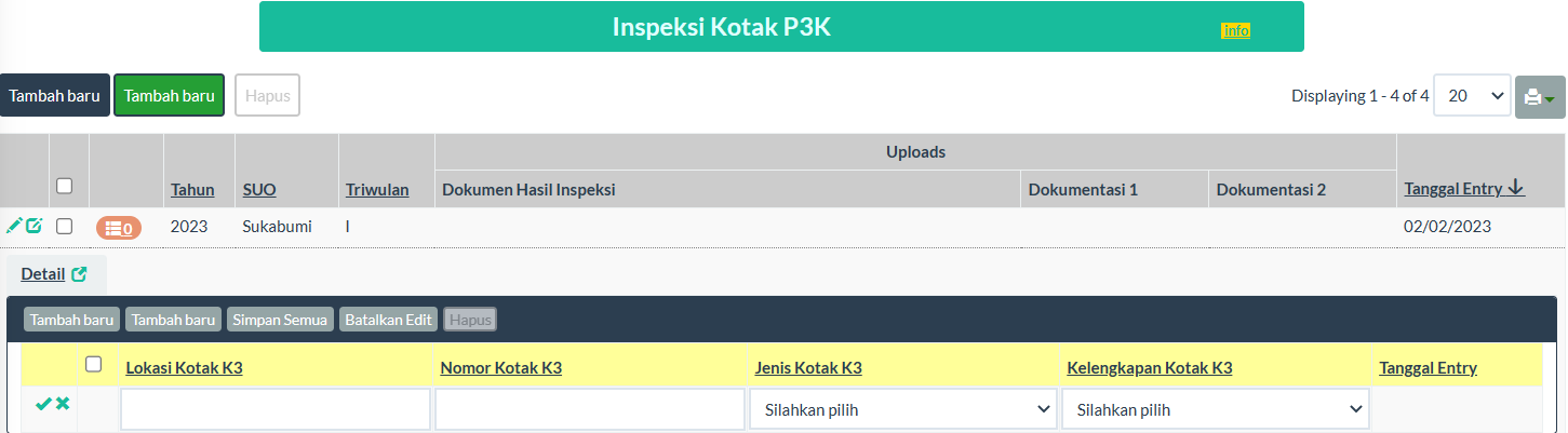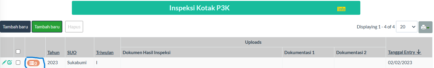 3. Triwulan : memilih sesuai dengan triwulan pada saat inspeksi.